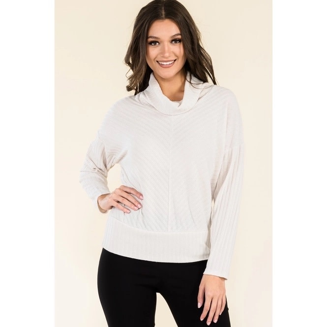 Wrap yourself in effortless comfort with this beautifully soft cowl-neck sweater. Designed in a clean, elegant ivory tone, this knit features a relaxed silhouette that drapes naturally for a flattering, easygoing fit. The subtle textured pattern adds depth without overwhelming the look, while the fitted hem and cuffs create a gently structured finish.