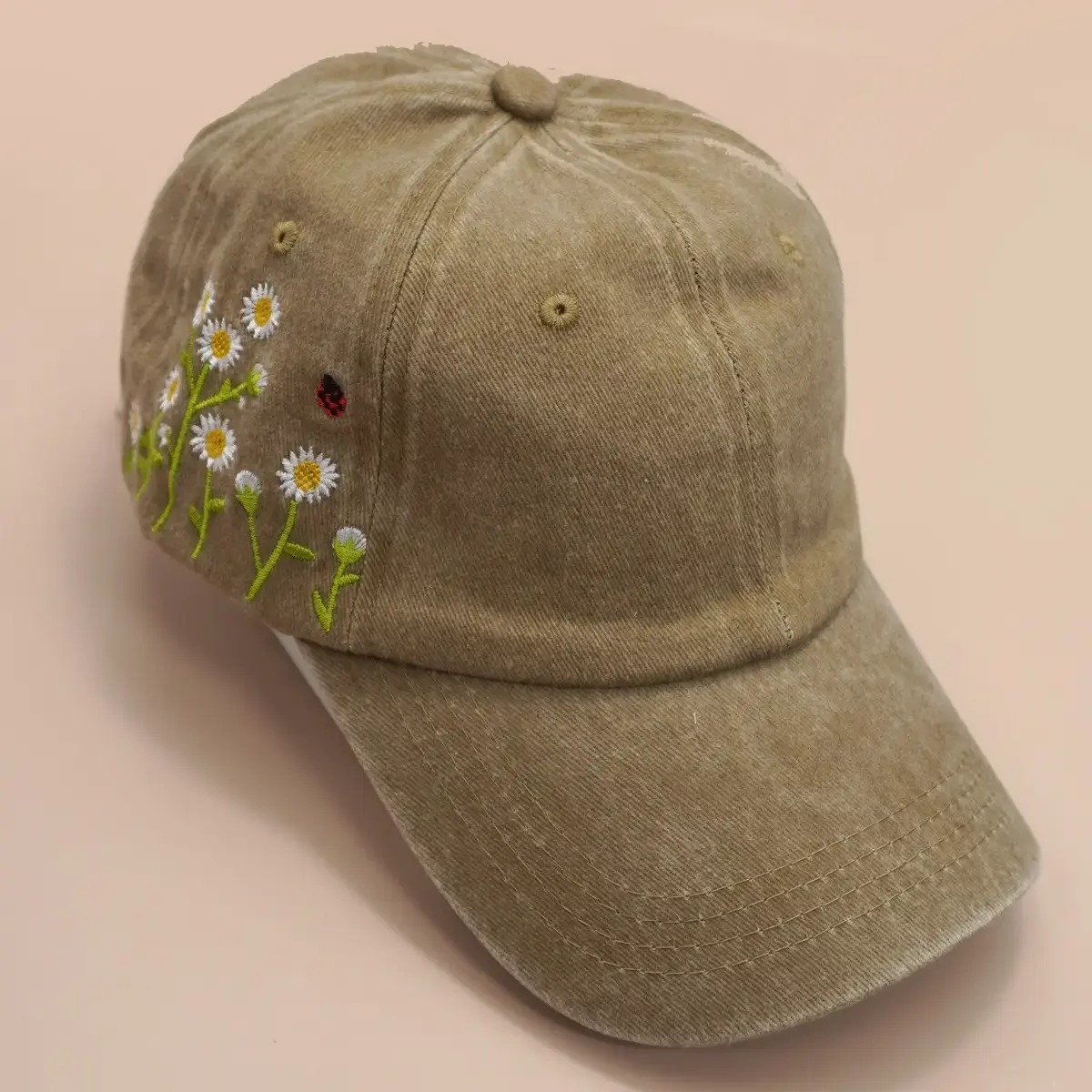 Charming baseball cap features an embroidered floral design, made from high-quality materials, it offers a comfortable fit and durability for everyday wear.