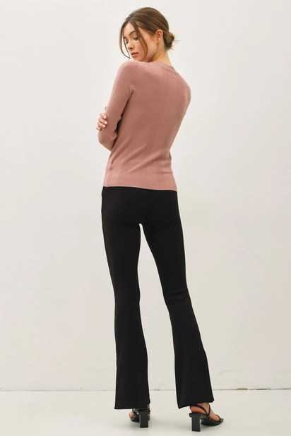 Soft, feminine, and effortlessly polished — this rose-toned knit sweater features subtle vertical rib detailing that flatters the silhouette while adding a touch of texture. Designed with a classic crew neckline and a comfortable stretch fit, it’s perfect for both workdays and weekends. Pair it with your favorite denim or tailored trousers for a timeless, put-together look.