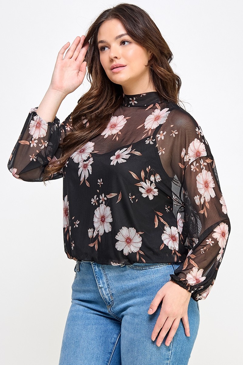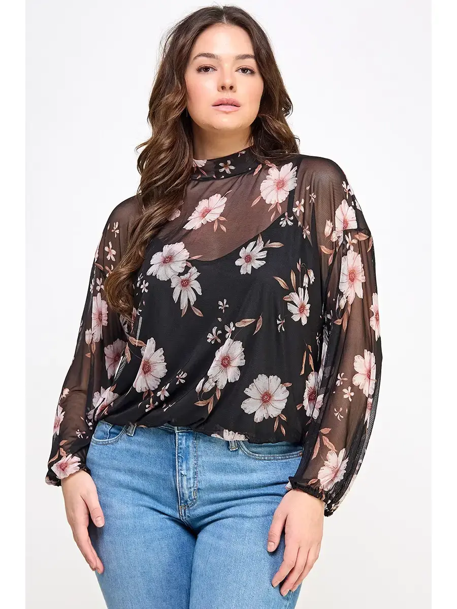 Feminine, flowy, and effortlessly flattering—this plus size floral mesh blouse is made to stand out. Designed with a lightweight sheer overlay and soft inner lining, it offers the perfect balance of coverage and elegance. The high neckline adds a touch of sophistication, while the relaxed fit and billowy sleeves create a beautifully draped silhouette that moves with you.