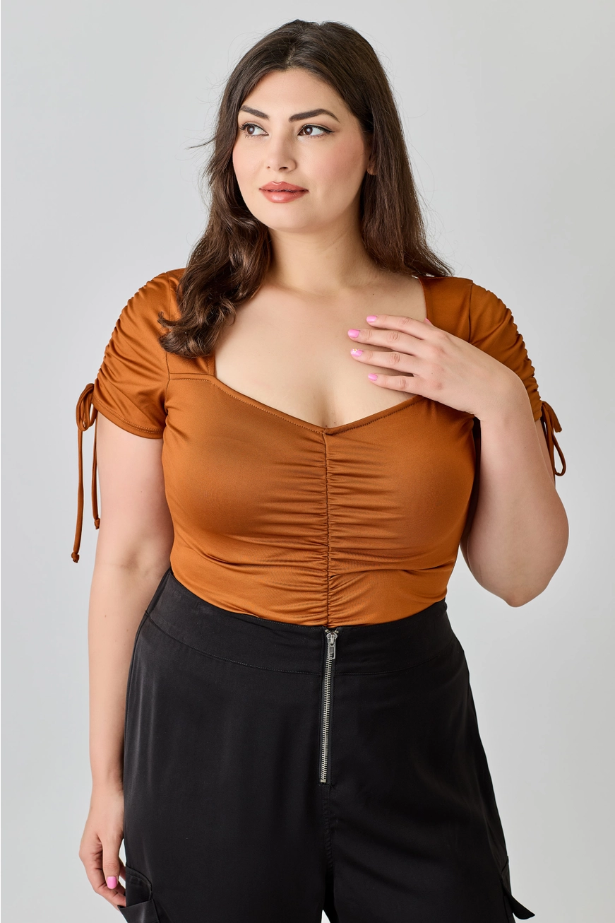 Plus Size Ruched Sweetheart Neck Bodysuit - Copper