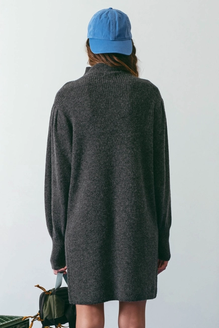 Voni Mock Neck Knit Sweater Dress - Charcoal